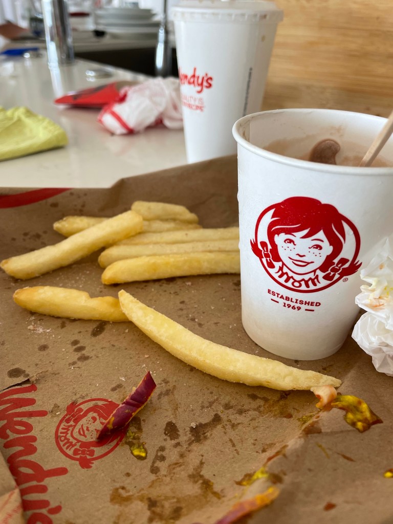 But this weekend I tried Wendy’s drive thru for I think the second time in the past dozen years. The price has gone up, and the portions have gotten smaller: the Frosty came in a Dixie cup. But most importantly, nothing tasted very good. Not actually bad, just not very good.