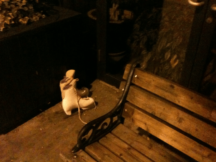 Walking down Main Street on an unseasonably warm fall night we chanced upon these classy old skates laid neatly next to a municipal planter box.