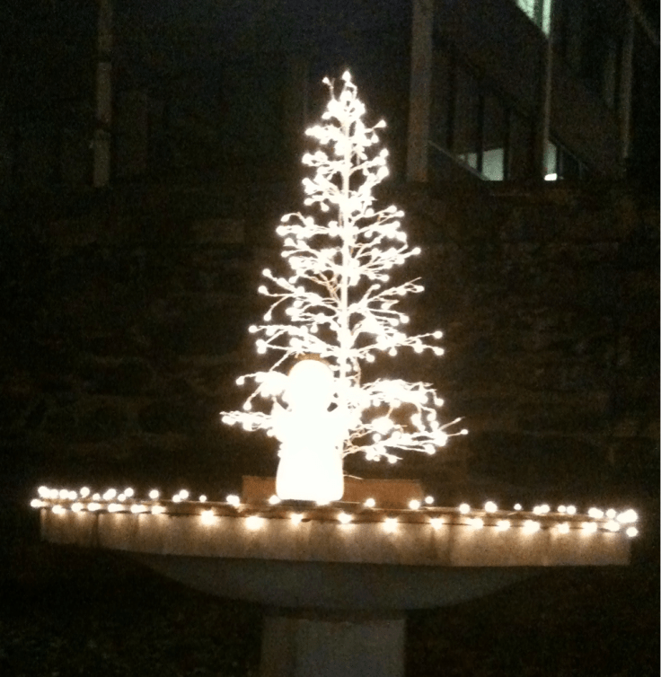 Mele kalikimaka !! This lovely little fountain tree sits outside the Headquarters of the Holstein Association. Did I mention that Brattleboro is the headquarters of the Holstein Association?