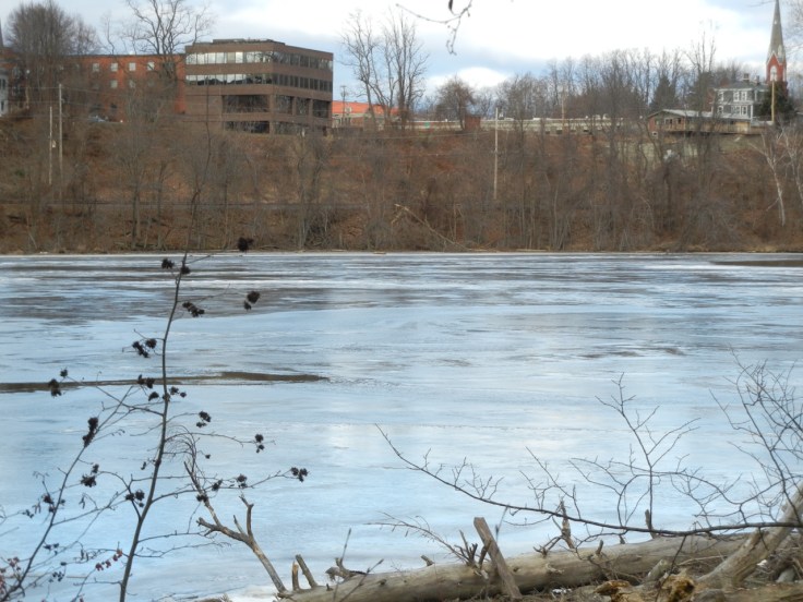 Now, although the weekend was warm again, the Connecticut River is more or less frozen across. On the calm, shallow waters of the Retreat Meadows, people are fishing and skating already. I say already, but of course it’s very late for here. Most years people are able to stand out on the Meadows ice and watch New Year’s Eve fireworks.