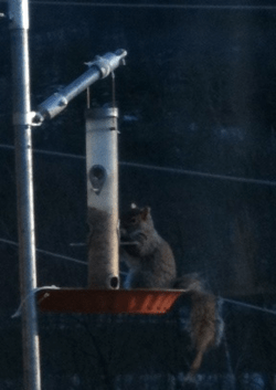In Connecticut, where we lived out in the woods, we fought an ongoing battle to try and keep squirrels out of the bird feeder. Until today, the reticent and affable Vermont squirrels had ignored the feeder. We had misguided hopes that the feeder’s exposed placement on the deck would deter them.