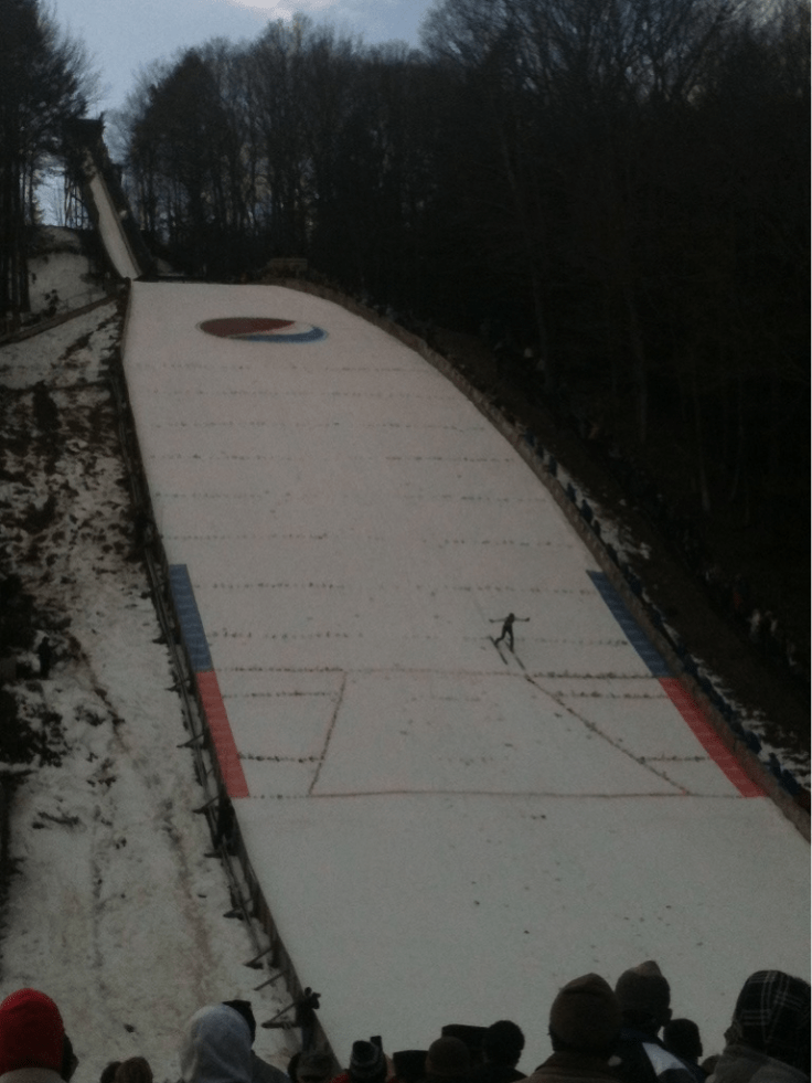 This weekend is the annual Harris Hill Ski Jump competition. I accidentally found the ramp a few months ago on a run, but today we got to see it in use… probably the only time all year it gets any use at all.