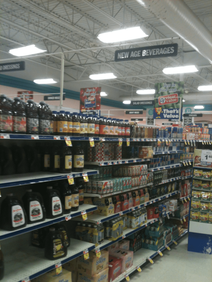 That same dichotomy exists in the grocery stores. The Co-op is a great place to shop, and it’s full of the kinds of unusual, organic and local foods you’d expect to find. The place is chock-full of shaggy-bearded volunteers, earnestly arranging the kombucha and seitan and tempeh. But, it’s also pretty expensive, and so for regular groceries we go to a regular store. There, we are relieved to see that the “wild” and “crazy” brands like Snapple and Arizona and Red Bull are cordoned off under the vaguely threatening heading of New Age Beverages.