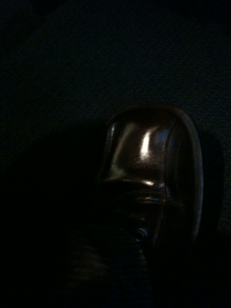 That is the incredibly shiny toe of my shoe, as seen on the floor of an AmTrak train. I’m en route home from a work trip to Washington DC, and I tried the Vermonter train, which goes from St. Albans, VT to Washington once a day. I can walk to the station in Brattleboro, which is very cool. It’s a slow train, lots of stops, but very nice, very relaxing. And, best of all is that I get to visit the shoeshine stand in Union Station, where a very old-school group of guys does a great job making everybody shine. Because it’s a 10-hour trip, I’m not sure how often i’ll actually travel this way, but it was a good experiment.