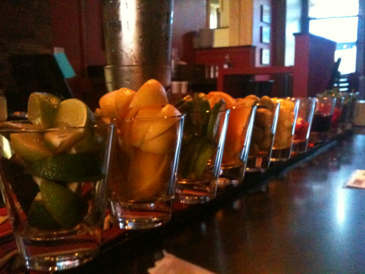 We stopped in for a restorative cocktail at Fireworks. Lemon, lime, cherries, orange slices, no problem. Strawberries, olives, ok. Mint and basil leaves, and on and on. These frou-frou cocktails (Earl Grey infused vodka and St. Germain, anyone? No? Then try tequila, muddled strawberries, balsamic, and bitters…) are a great show, and taste pretty good, too.