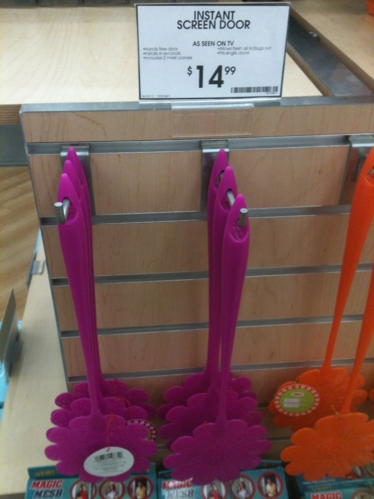 It wasn’t really intended this way, but I thought the sign for an “instant screen door” poised over the display of flyswatters was really good. Bothered by bugs but don’t want to hang an old-fashioned screen? No problem!
