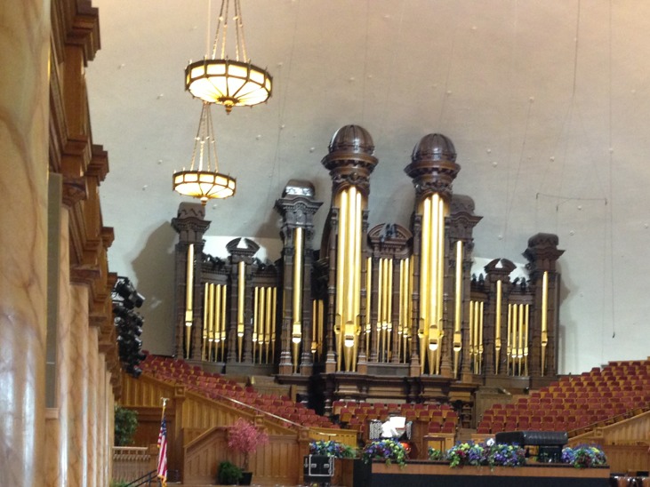 Jesse and I wandered over to Temple Square for him to take a look around. We fended off the friendly advances of the Sister Missionaries, and went into the tabernacle. Somebody was playing the organ, practicing, and the whole building shook.