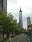The newly-spired Freedom Tower dominates the lower Manhattan skyline just like the World Trade Center did. Jogging along the Westside Highway (with everybody else) this morning, I got my first glimpse of the tallest building in the Western Hemisphere. It’s tall alright, but you can’t actually say that it soars. It’s more about mass, stability, an anchor.