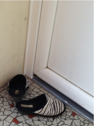 You must remove your white tiger shoes before you enter my house, because they will clash with my mosaic tile work.