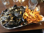 We taxied back to Toulouse and went into the center for dinner. We DID NOT eat at L’Entrecôte, where people stand in line every night for what is by most accounts a good but not great steak dinner. Instead, we went across the street to palace called Quand les Moules Auront les Dents (which is a pun off an expression that translates roughly as “when pigs fly” only in French it’s “when chickens have teeth” and the word for chicken sounds like the word for mussel) and had a very nice meal of moules mariniere.