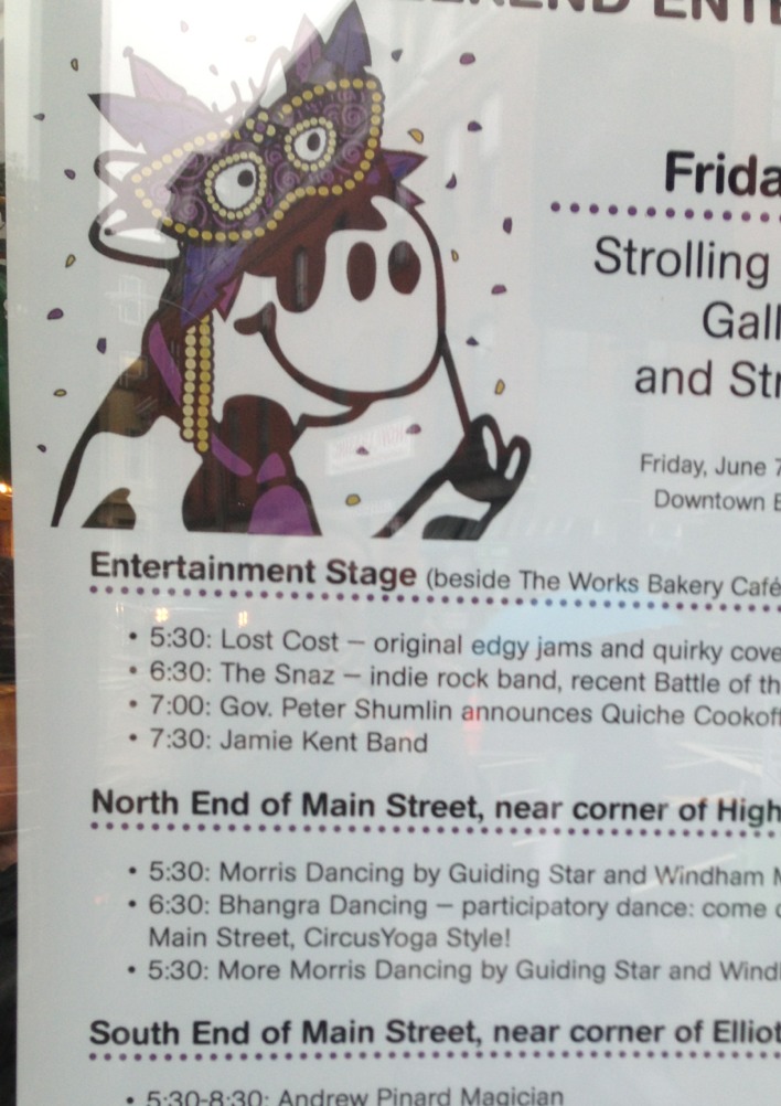 This is the Poster with the schedule of events for Strolling of the Heifers activities tonight.