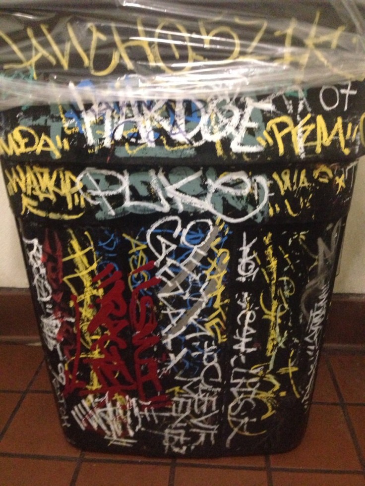 All memorable but all hard to capture for one reason or another. And then with an hour to go I saw this trash can at fine dining spot LAX Tacos, and met my day’s muse. Such pride, such exuberance these taggers have! Such flair!