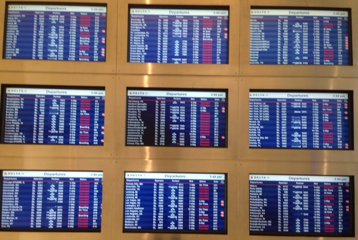 All the red flights are cancelled. All the other ones are listed as “Waiting for Godot.”