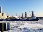 Jogging around Quebec this morning, lots of ice and the mighty St. Lawrence. I saw some crazy oarsmen out in the river with a boat that could run up on the ice sheets, they would hop out and drag it across a chunk of ice, then hop back in. Amazing murals on highway stanchions. Groomed xc ski trails and a speed skating track in the park. Very livable it seemed, even in winter.