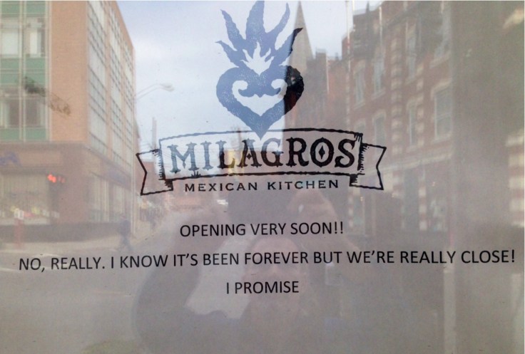 Very excited to see this sign go up at our next favorite eatery last week, replacing the “opening in February” sign that had been there before.