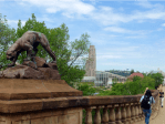 Hillier than I expected. Squarish dark houses closely spaced. Massive infrastructure for getting from place to place, but a lot of it crumbling, as in “steps closed” above. Big strong parks and public buildings, like Schenley Park above.