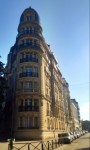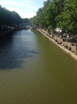 Canal St. Martin, a cafe, and a grand old building near the Buttes Chaumont