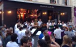 Last night was la Fête de la Musique, where everyone pours out into the streets for a big midsummer romp. Bands and DJs played till all hours, and it was ok to take your drink out on the street, New Orleans style. People brought their families out, and while we were eating dinner we enjoyed watching a whole line of boys devour sandwiches across the street.