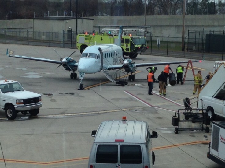 He got two fire trucks, a police SUV, and about eight maintenance guys to supervise the official paper towel guy, who also came equipped with the optional scoop of kitty litter to make sure that no jet fuel soaked into the ground water.