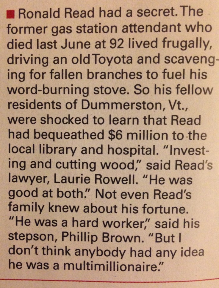 This is a wonderful story, and neat that it has been picked up nationally. It’s also one that makes me say “hmmm” … maybe I’m investing wrong. Dummerston is the next town over, and the hospital and library are both in Brattleboro. It’s the biggest gift either institution has ever received.