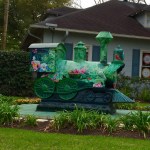 According to Wikipedia, Katy really got on the map when the M-K-T Railroad (on whose old right of way we used to go running and biking when we lived in “M"issouri) came through in the 1890s. The railway allowed large scale agriculture to take off in this otherwise swampy area: first sugar cane, then rice. Katy built the first concrete rice dryers in Texas. Today, it’s a thriving suburb where they can’t build new condos fast enough. The railroad is reduced to an inspiration for yard art and a small museum in an old caboose, and the empty dryers loom sadly over the freeway as people throng to the mall.