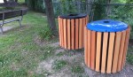 Exhibit A – Vermont’s tough new waste disposal law requires all municipalities to make recycling containers available everywhere there’s a trash can. So, $30,000 later, here we are.