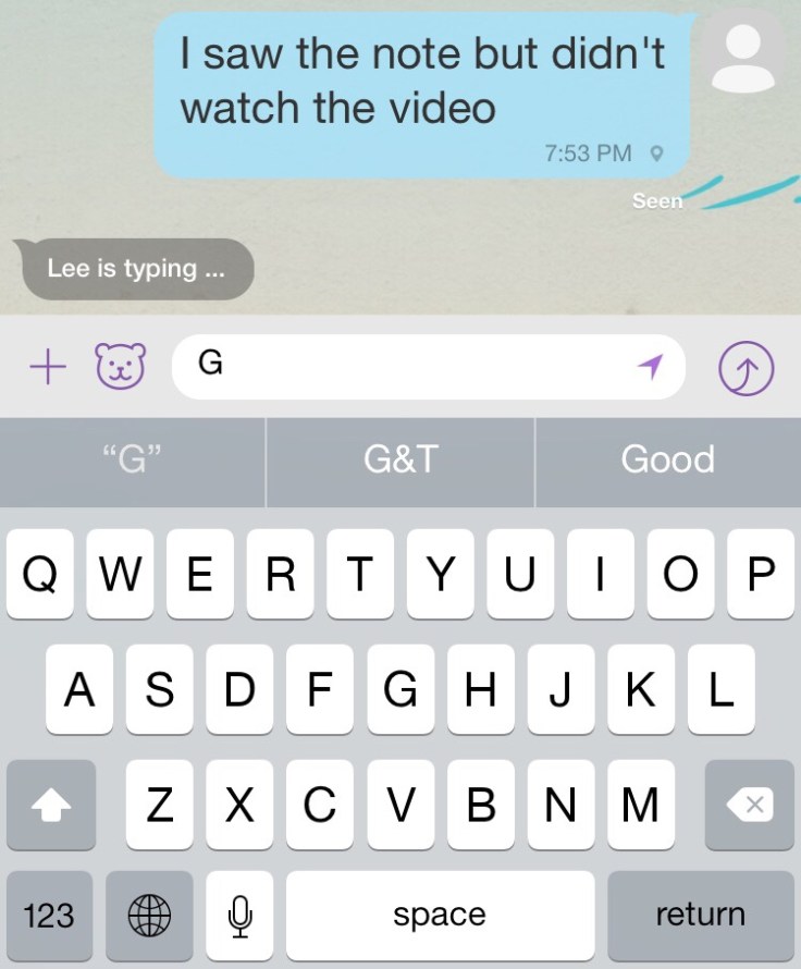 I really like how the iPhone’s progressive keyboard feature automatically brings up “G&T” as soon as I touch “g.” I’ve never typed that phrase myself, so it’s not like it’s a learned behavior… Then again, I suppose there’s a point in the day at which one might type “G&T” and not really remember it…