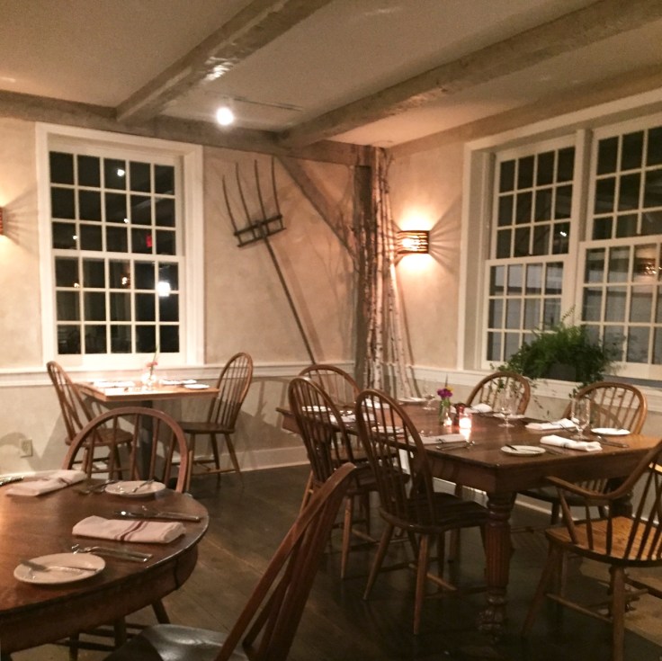 For decor, they’re doing a modernized take on the typical New England Inn theme. The Windsor style chairs are mismatched but elegant, the color scheme is tone on tone, the art still tends to sheep and barns but with a decidedly contemporary flair.