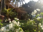 Keep adding: the smells and sounds of frying onions and burning brush and motor scooters. Add tennis thump-whack and swimming pool squeal-splash. Add a pile of trash right outside the carved walls, and three people to pick through it. Add 300 who truly need the leftover food and the blown-out flip flops. And even more who need the electricity I’m using for full strength wi-fi reception and wafts of Kenny G all the way at the edge of the resort.