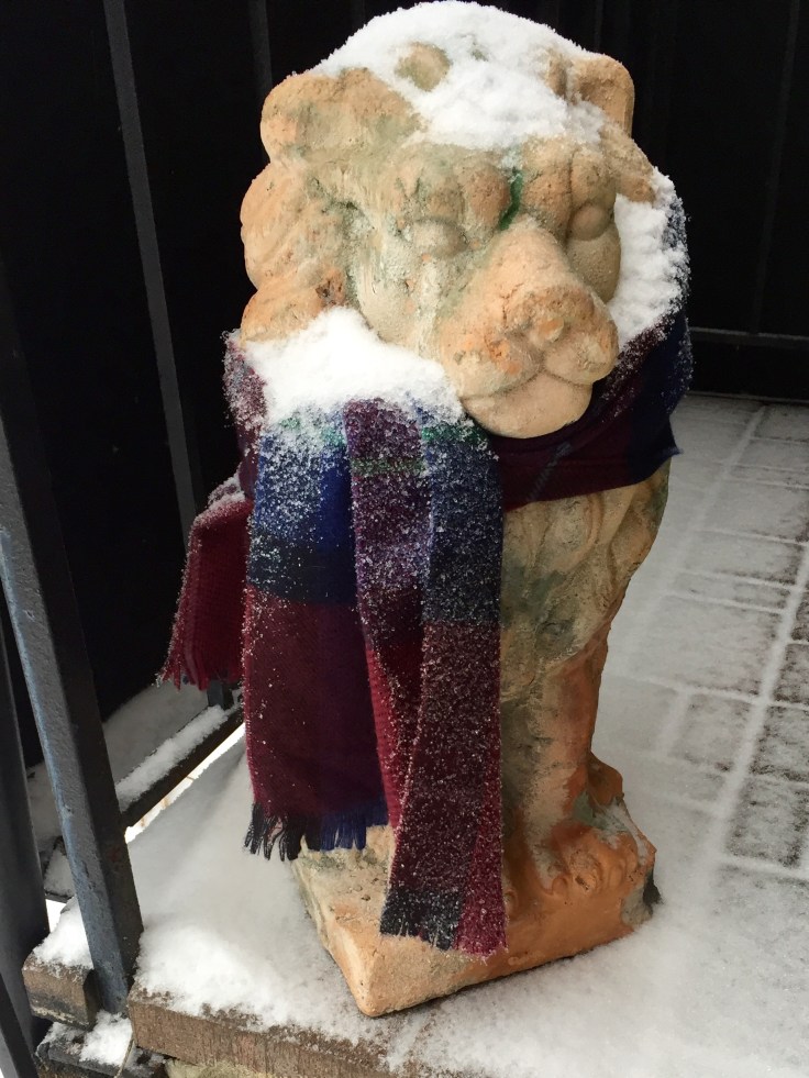 As I fly west and south to a place where even the slightest hint of winter is strictly a matter of chance, I praise the stoic lions who keep our porch safe.