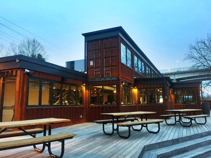 After finishing up in Charlotte, I drove to Asheville to see my dad in his new NC home. First stop, Smoky Park Supper Club, built entirely from shipping containers. Great meal, beautiful building.
