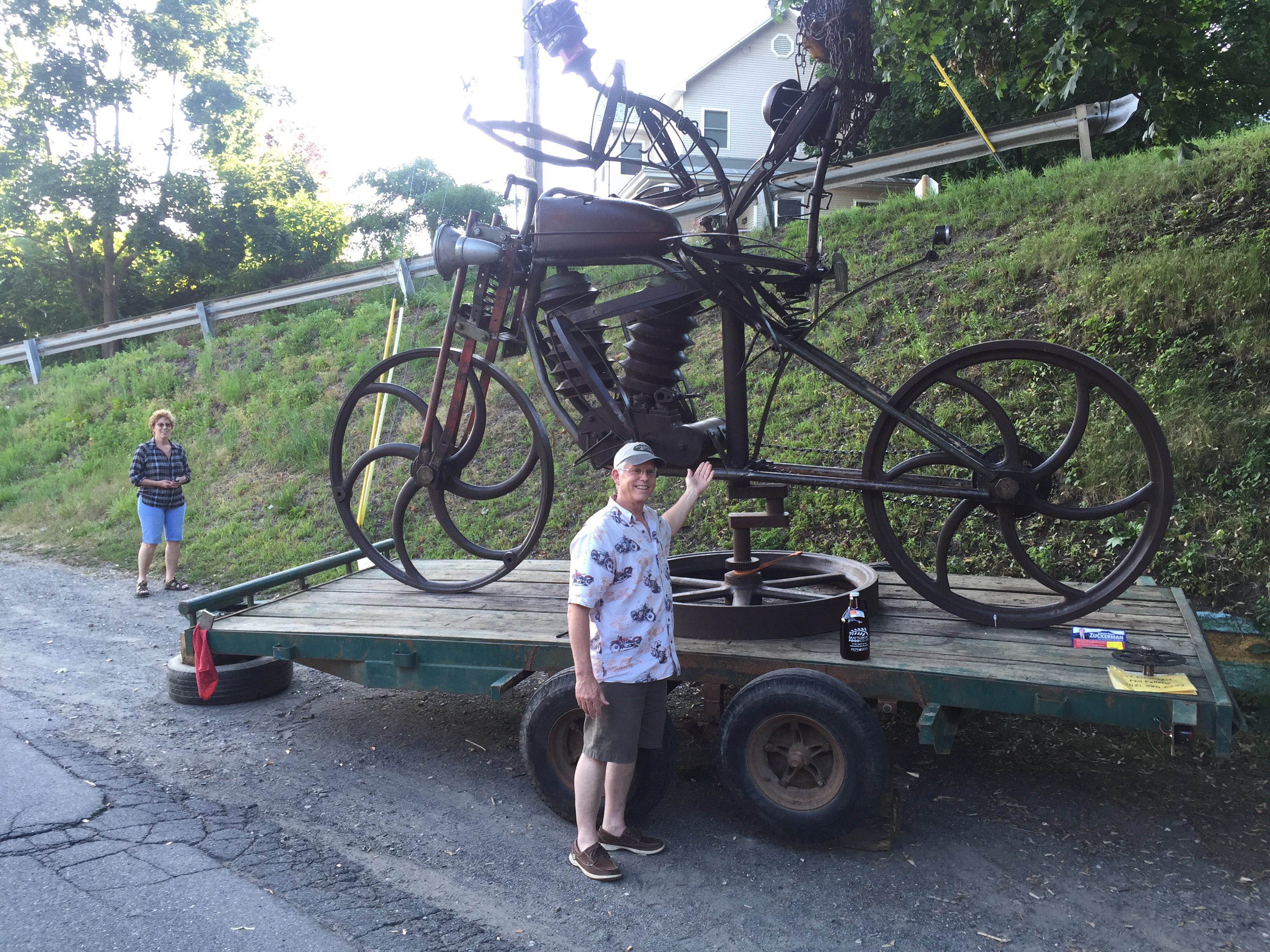 Brother Frank is up visiting from his home in Pasadena, TX. Walking around near Lynde Motorsports, we came on this big art-cycle by Phil Pellerin.