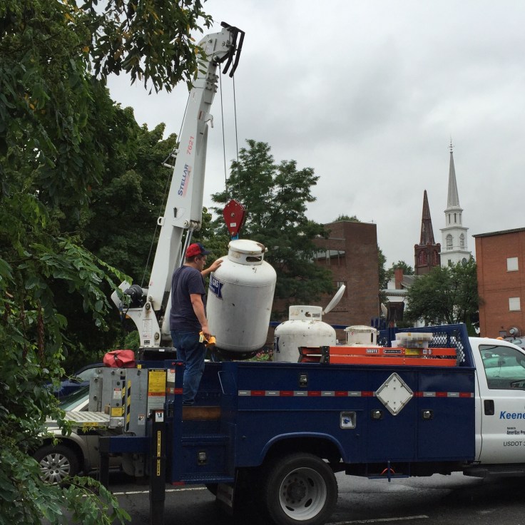 As a former restaurant, we had 4 propane tanks all lined up in front of the house. We don’t use as much hot water or heat as a restaurant, and we’ve converted a lot of our appliances to electric anyway, plus the pellet stove.