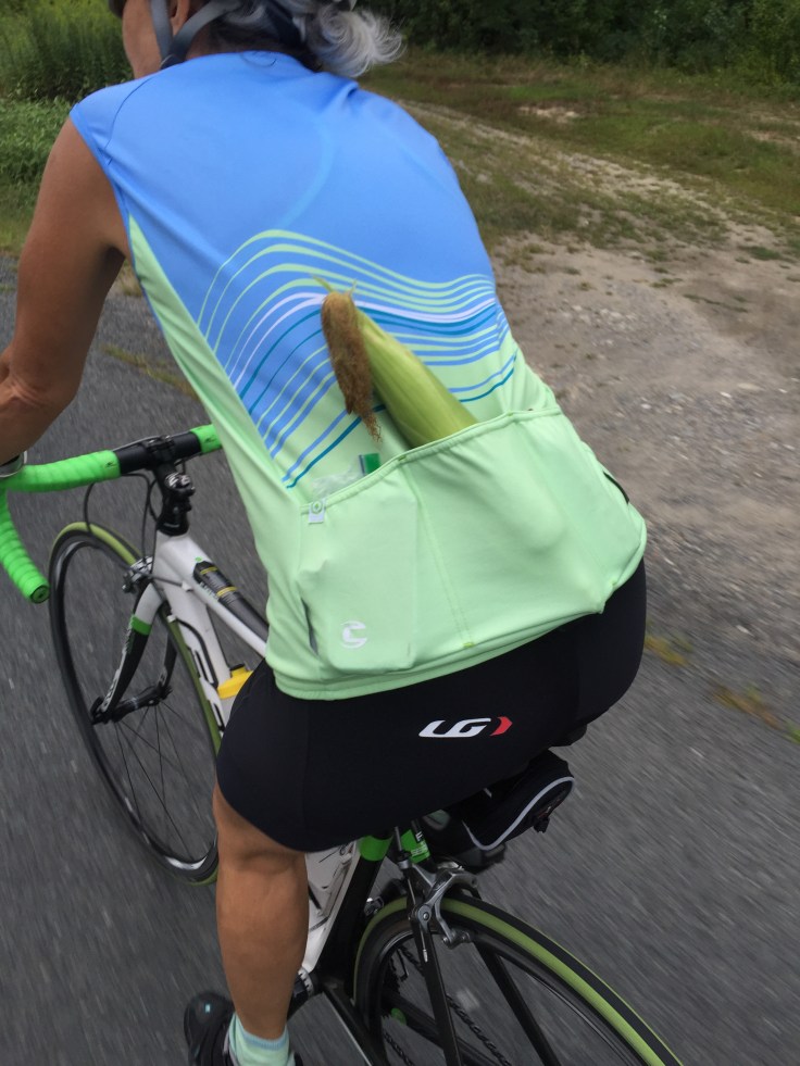 Is that a corncob in your pocket or are you just happy to be out riding? Joyce, John B. and I stopped at a farm stand for some of the supposed best corn in New Hampshire. Share this: Click to share on X (Opens in new window) X Click to share on Facebook (Opens in new window) Facebook Like Loading... Related Leave a comment Cancel reply Δ