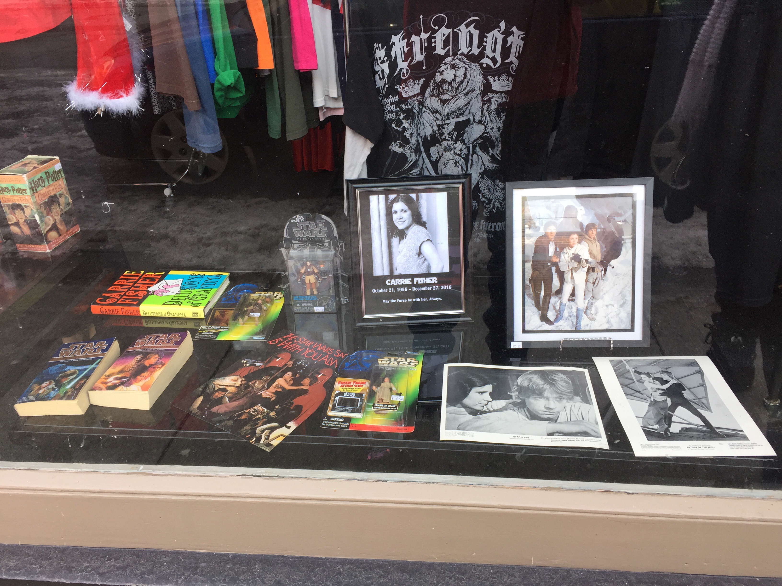 And from a fun store called Positive Geek, we have a shrine to the late Carrie Fisher.