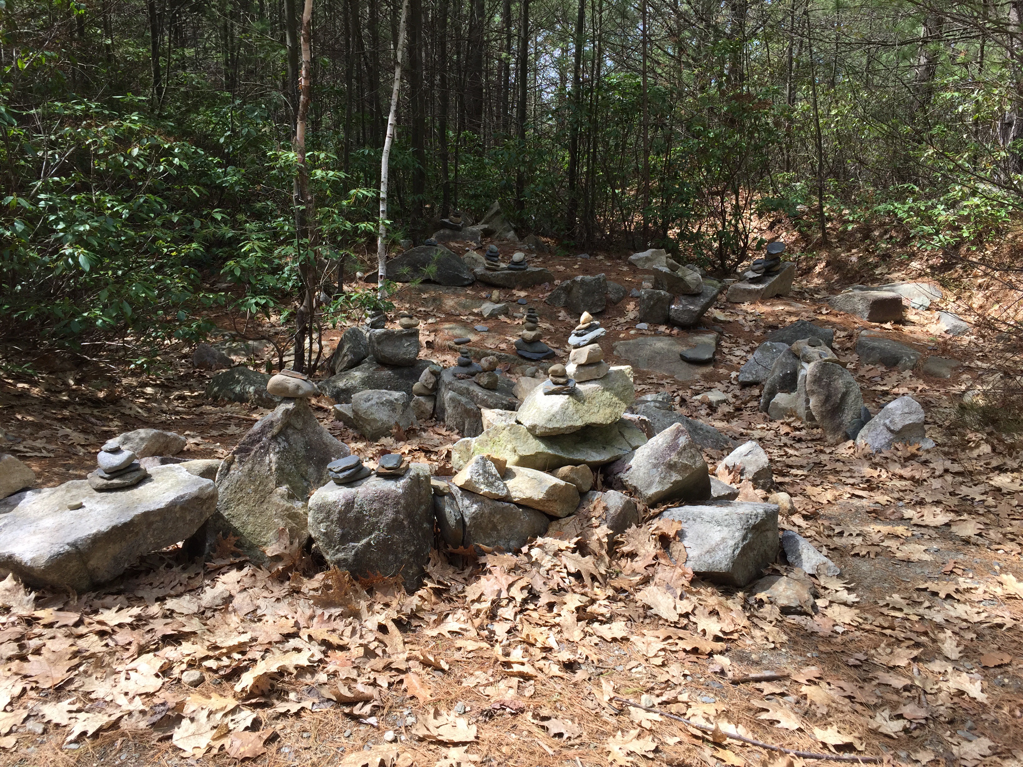 Apparently these cairns were getting a little bit out control at the lookout point on top, and one day they were just not there anymore. But a few have been left in this little grotto on the trail up.