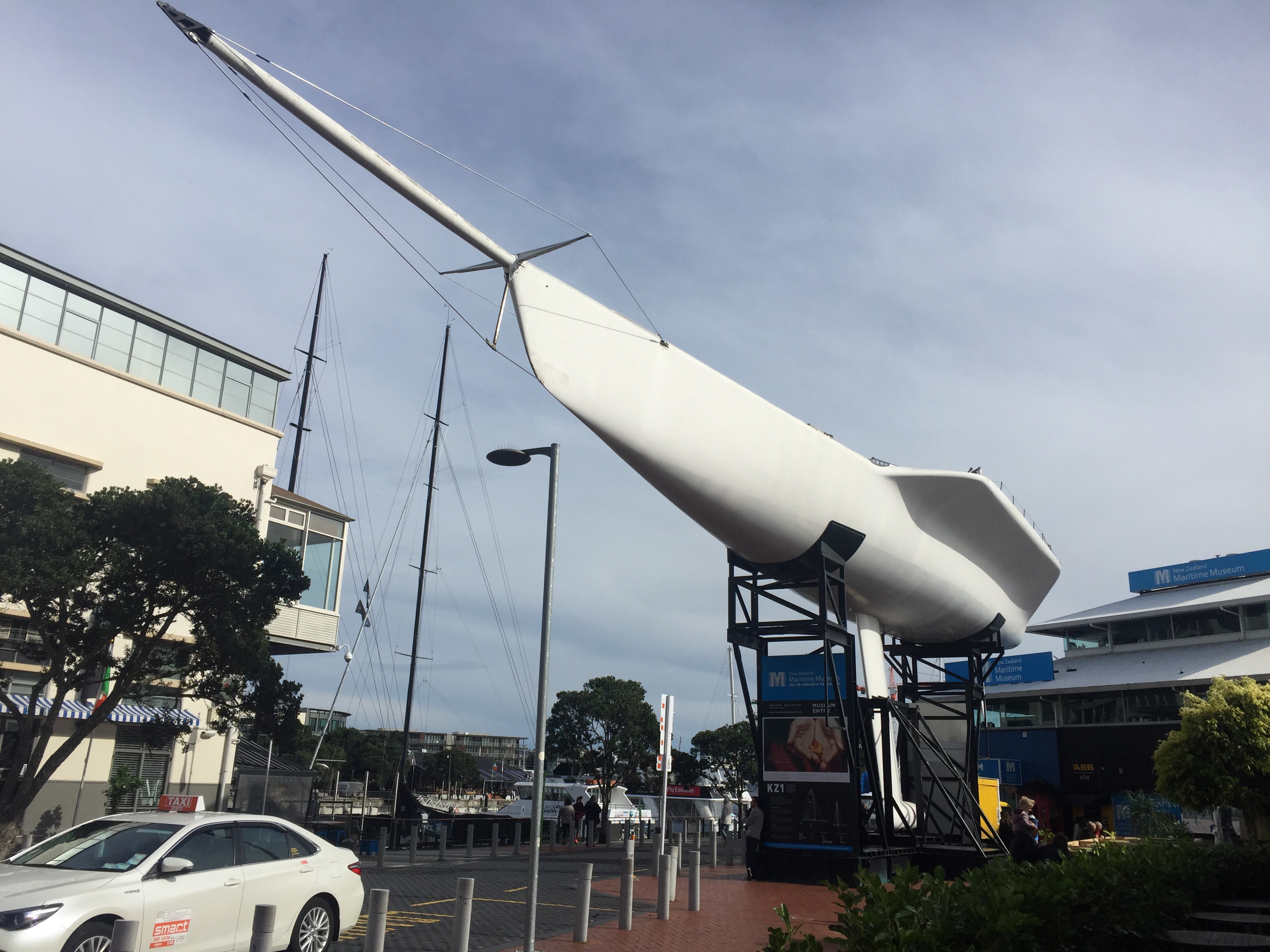 Outside the Maritime Museum, this was the fastest monohull boat ever built, supposedly, in the late 1980s, the Americas Cup pride of NZ. Unfortunately, the Americans figured out that catamarans weren’t explicitly forbidden, and this boat ended up as a very slow knife at a gunfight.