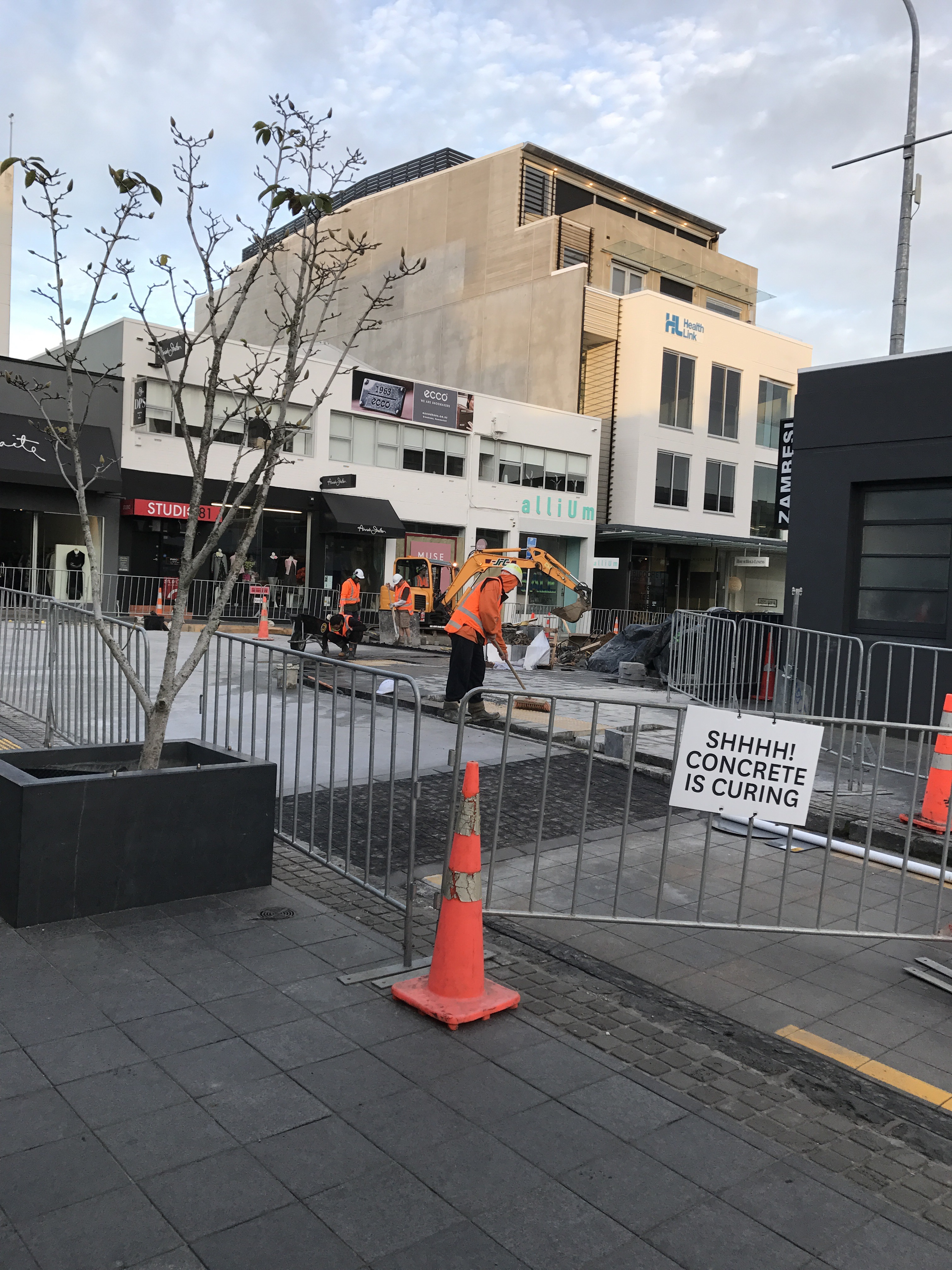 They’re “upgrading” this street to be more of a pedestrian mall type setting. If you have to spend time in any of those conference rooms in the background, the noise can be a bit overwhelming, despite what this sign says.
