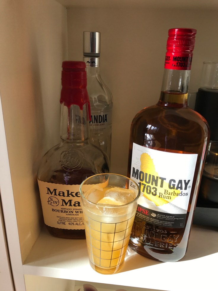 So, a few weeks ago, we ended up with quite a basket of mixed fruits. I thought I would make a sort of lemonade, doing it the Joy if Cooking way where you boil some rinds in with the syrup for extra flavor. So I did, and it came out pretty good.