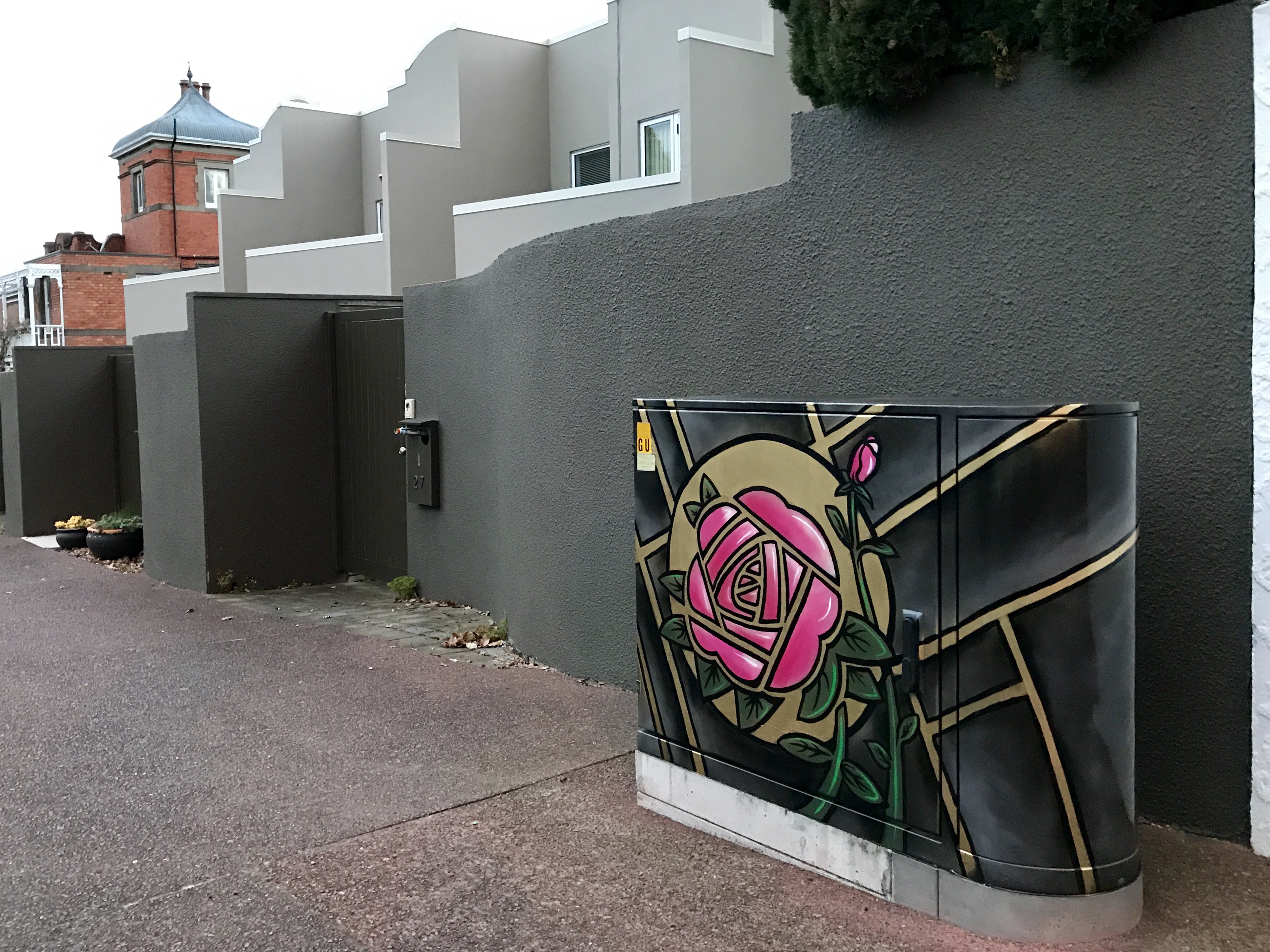 Just in time for spring and the rose garden down the street to start blooming, the utility box in front of our building got a cool new look.