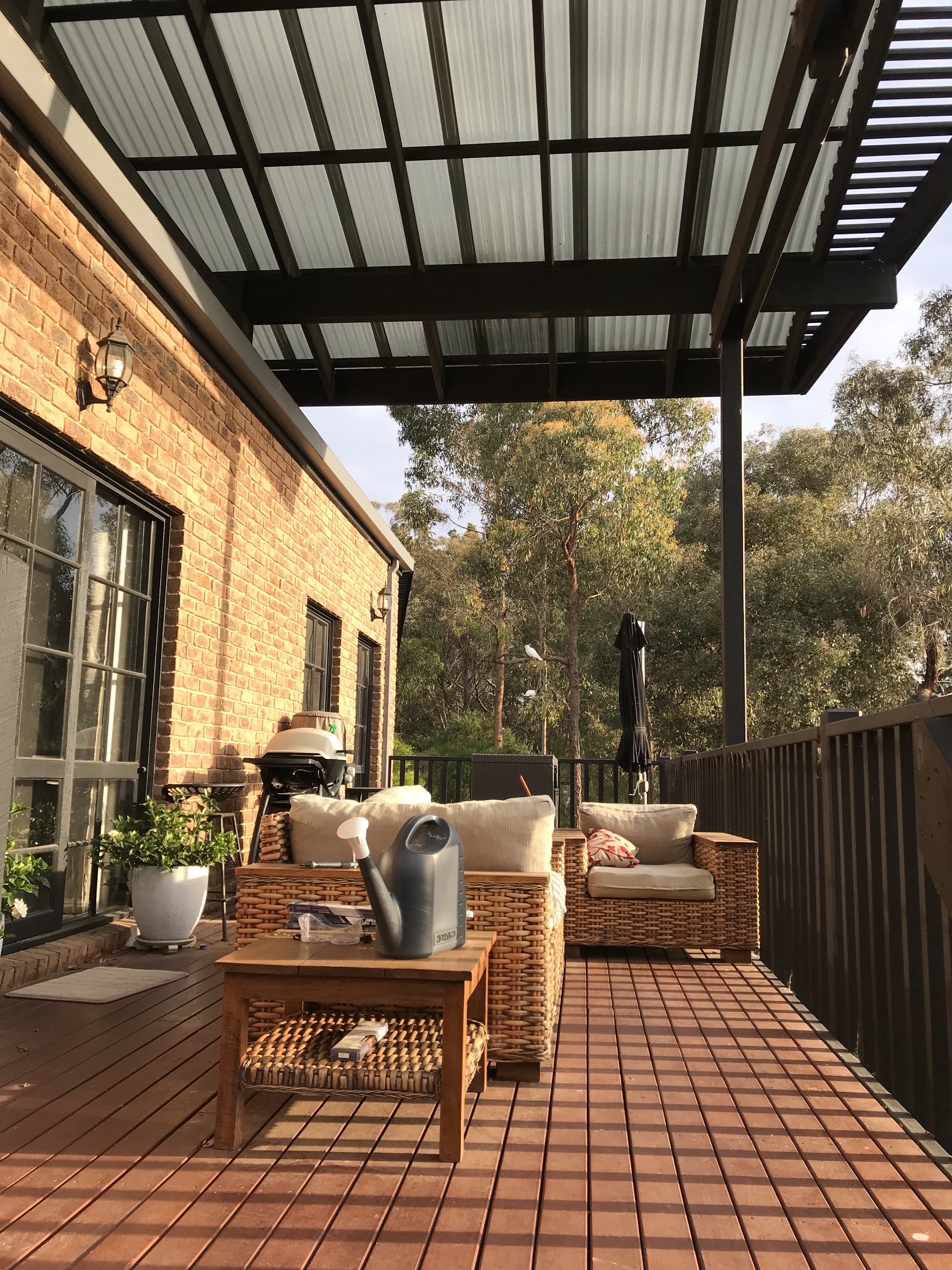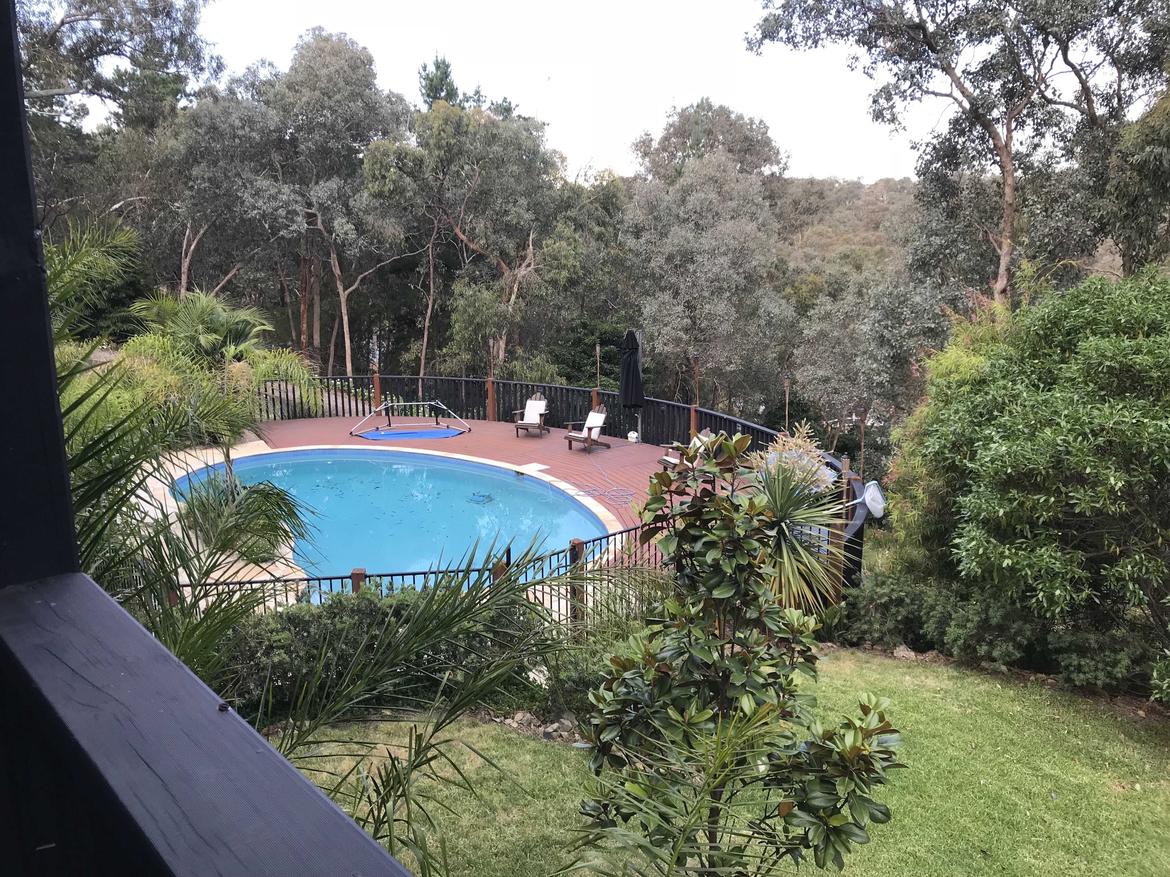 You can just make out the cockatoos at the feeder beyond the deck.