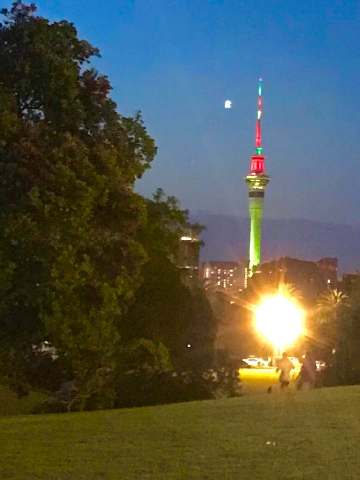 And the Sky Tower (sorry about that big bright flash at the bottom… the hazards of low-light pictures).