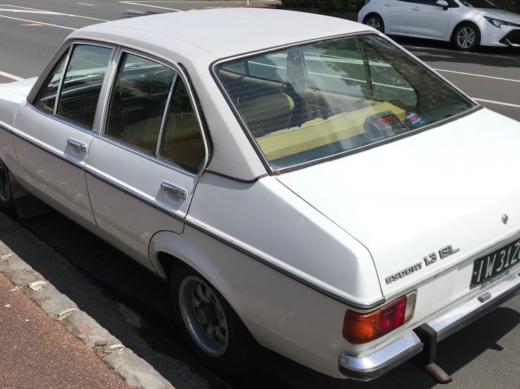 This spectacularly ugly Ford Escort was first registered in about 1977, based on its license plate. In NZ, since there are no states, there’s only one sequence of plates… two letters followed by up to three numbers started in 1964, with AA plates. The plates flipped from black to white in 1981, somewhere around the letter M. They ran out of numbers in 2000 and started over in 2001 with three letters. Our car registered this year is LNE… so the current numbering will last for quite a few more years.