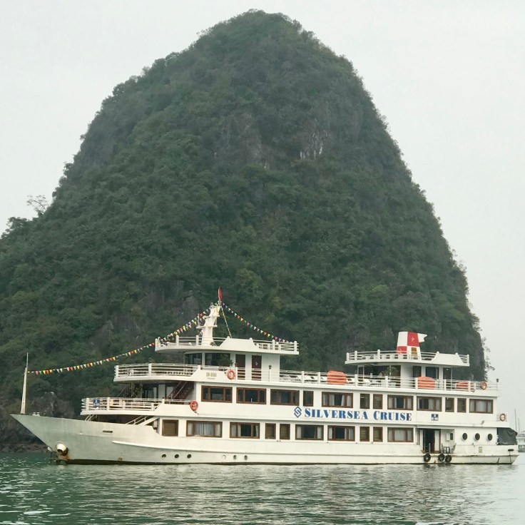 There’s the boat we stayed on for two nights in Ha Long Bay, the Silversea Cruise. We were ‘upgraded’ to this boat after choosing another one. All the details of what amenities you get for what price are highly specified , but somewhat opaque to the average punter like me.
