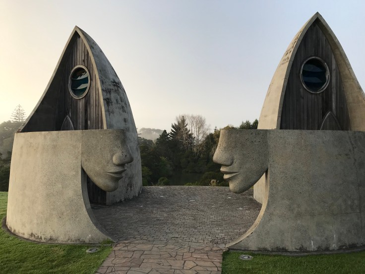 We parked at the entrance to the village, overlooking a pretty little park, which was crowned with these impressive public toilets. The north of New Zealand seems to have kind of a thing for its toilets.