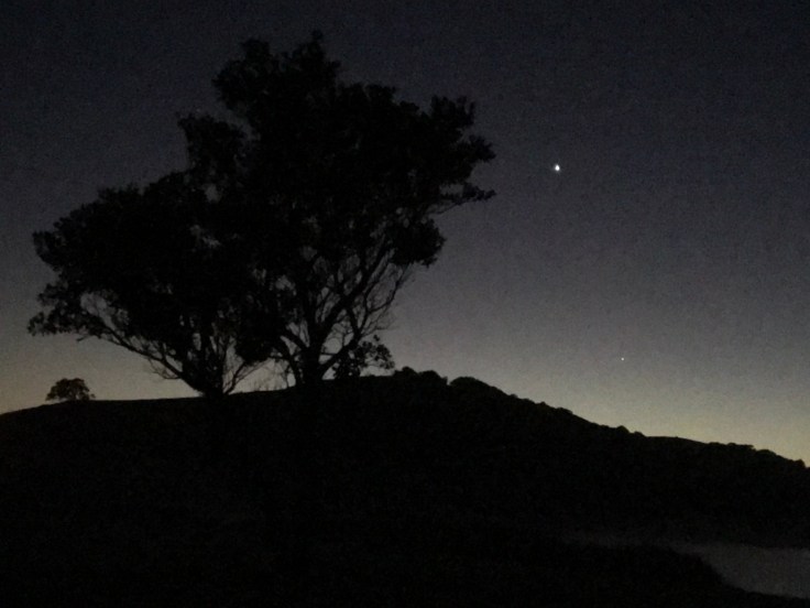 We got up at 2:30 AM and drove a long hour north to one of the recommended viewing spots, Tāwharanui Regional Park. We parked right near the beach, which is probably a really nice beach in daylight.