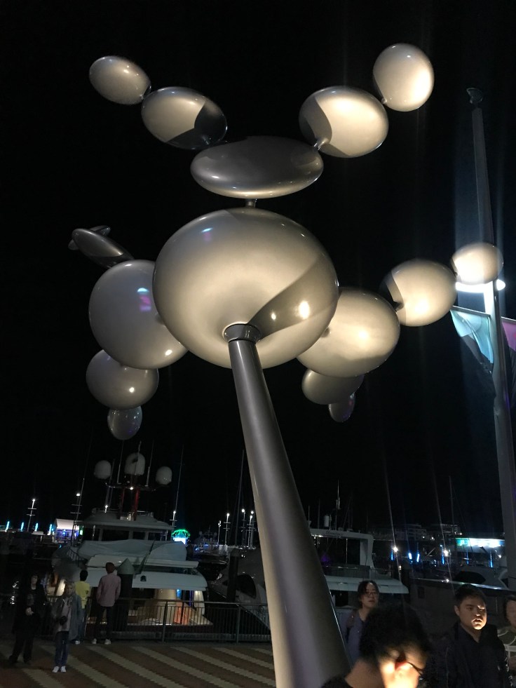 Thousands of other people also thought it would be a fun time! It was shoulder to shoulder. Some of the installations seemed pretty cool, like one that made noise when you touched it. But the artist’s vision might or might have included the reality we saw: 50 sticky overstimulated kids slapping as hard and fast as possible so all the sounds and all the lights.
