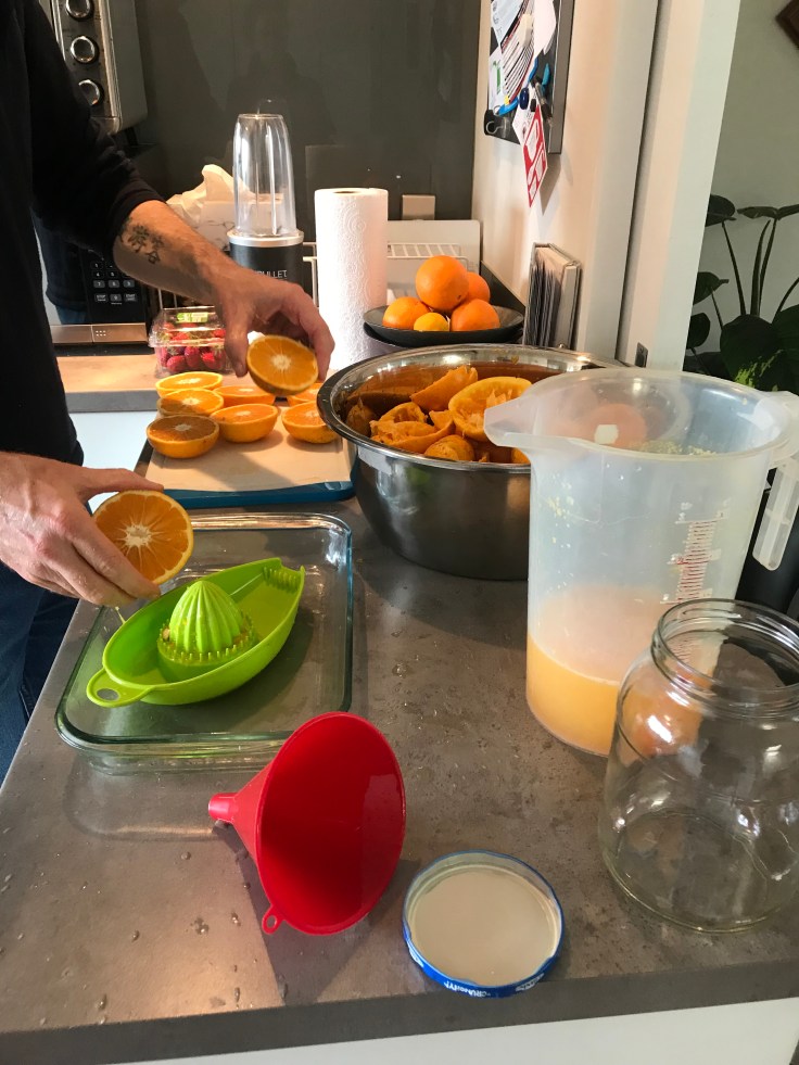 Winter is giving way to spring, and the final citrus harvests from Tom’s grapefruit tree yielded gallons of delicious juice.