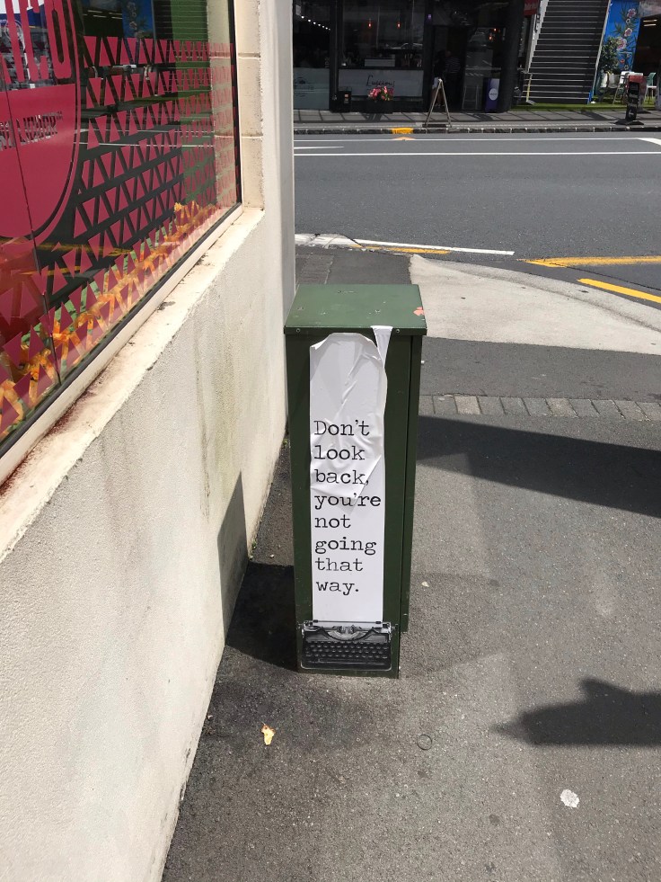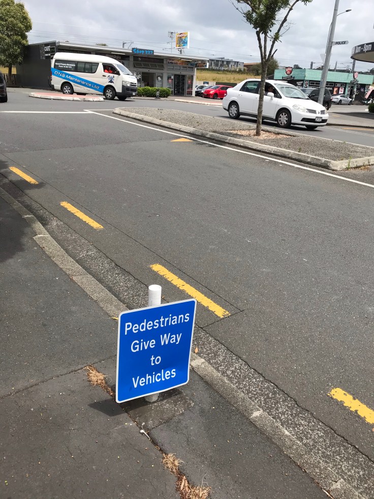 The bottom sign isn’t funny or ironic or anything. But it’s a thing that is true all over Auckland and should be signed more often. It’s been a hard transition from the US where the pedestrian gets the right of way a lot more often. In NZ, pedestrians have priority only in marked crosswalks. Everywhere else, you’re on your own.