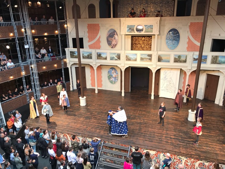 Last weekend we went to see King Lear at the Pop-up Globe theater. This particular show was actually the class project of the various youth training courses the theater does, and one of my swim buddies’ daughter was in it.